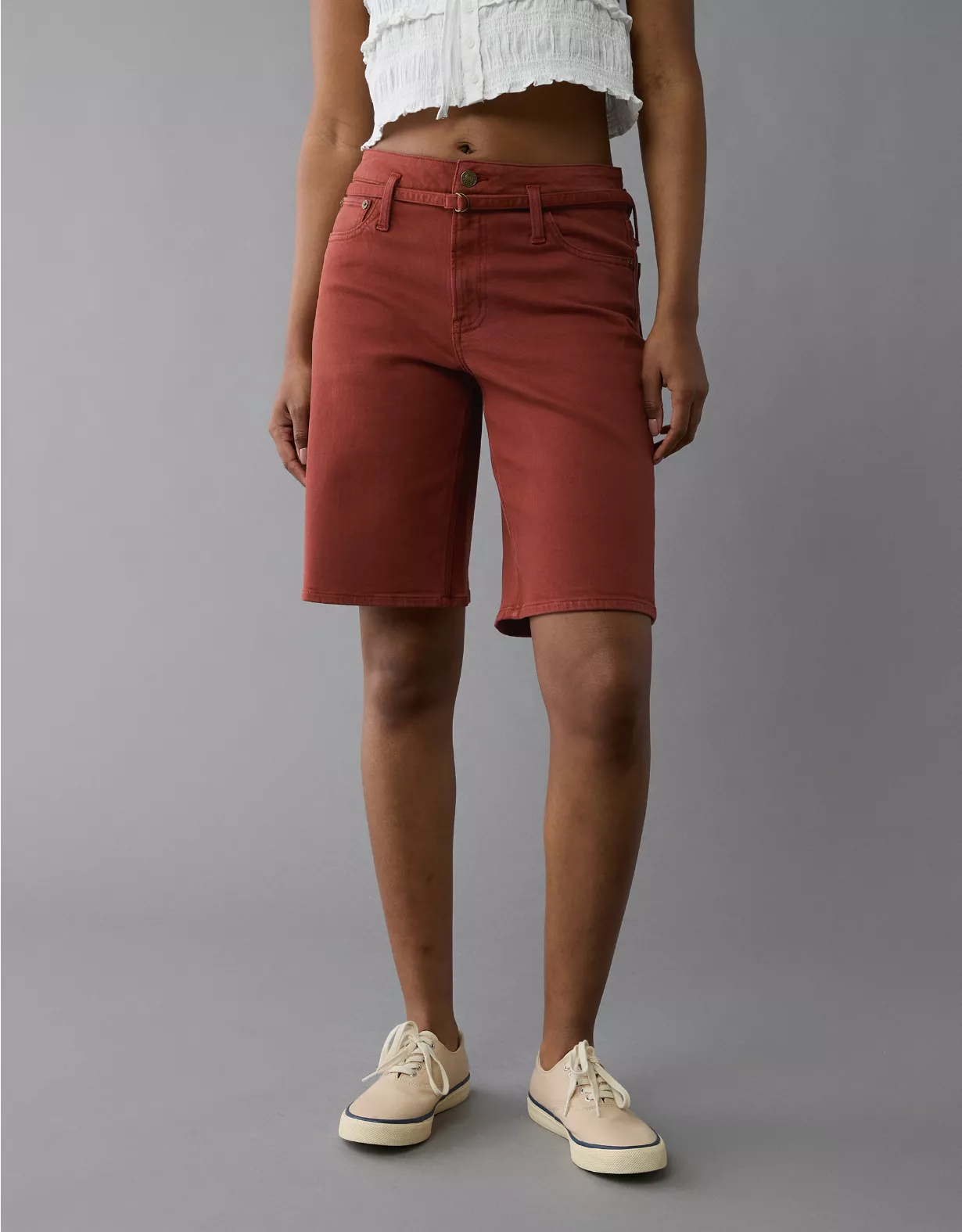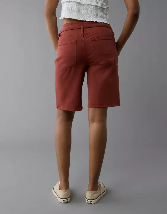 A bold, on-trend short with a high rise, baggy leg and long inseam.