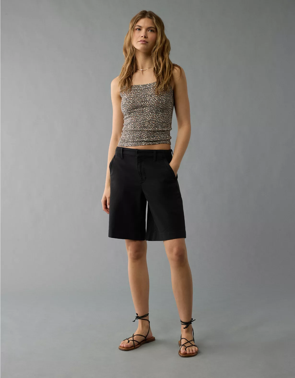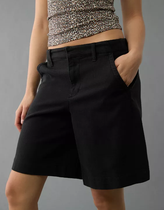 A bold, on-trend short with a high rise, baggy leg and long inseam, featuring trouser-inspired details.