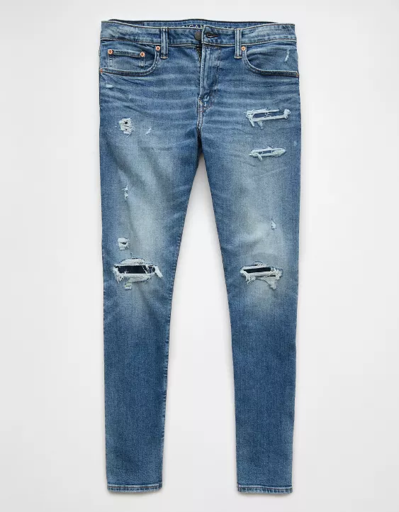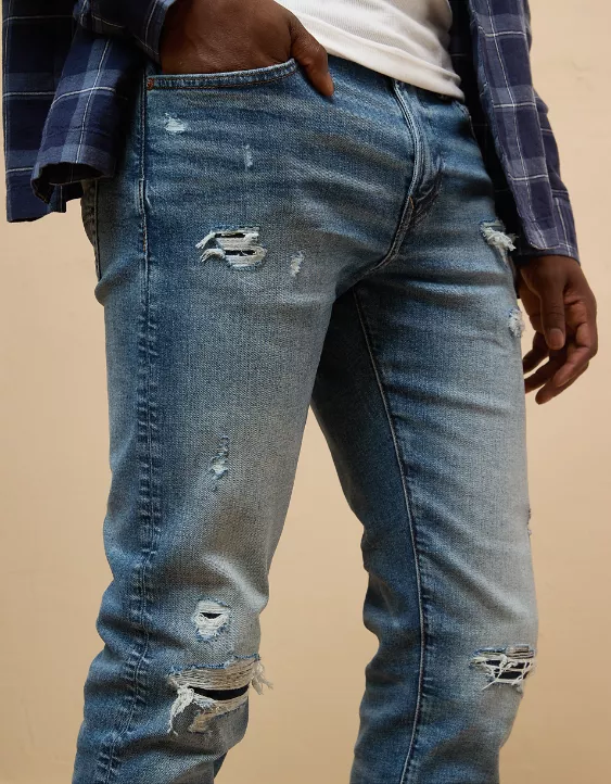 AE AirFlex+ Patched Athletic Skinny Jean Destroyed Medium Wash
