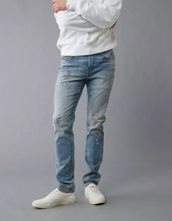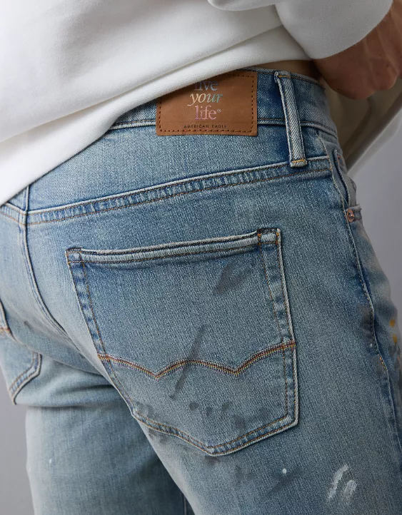 AE AirFlex+ Patched Athletic Skinny Jean Indigo Splatter