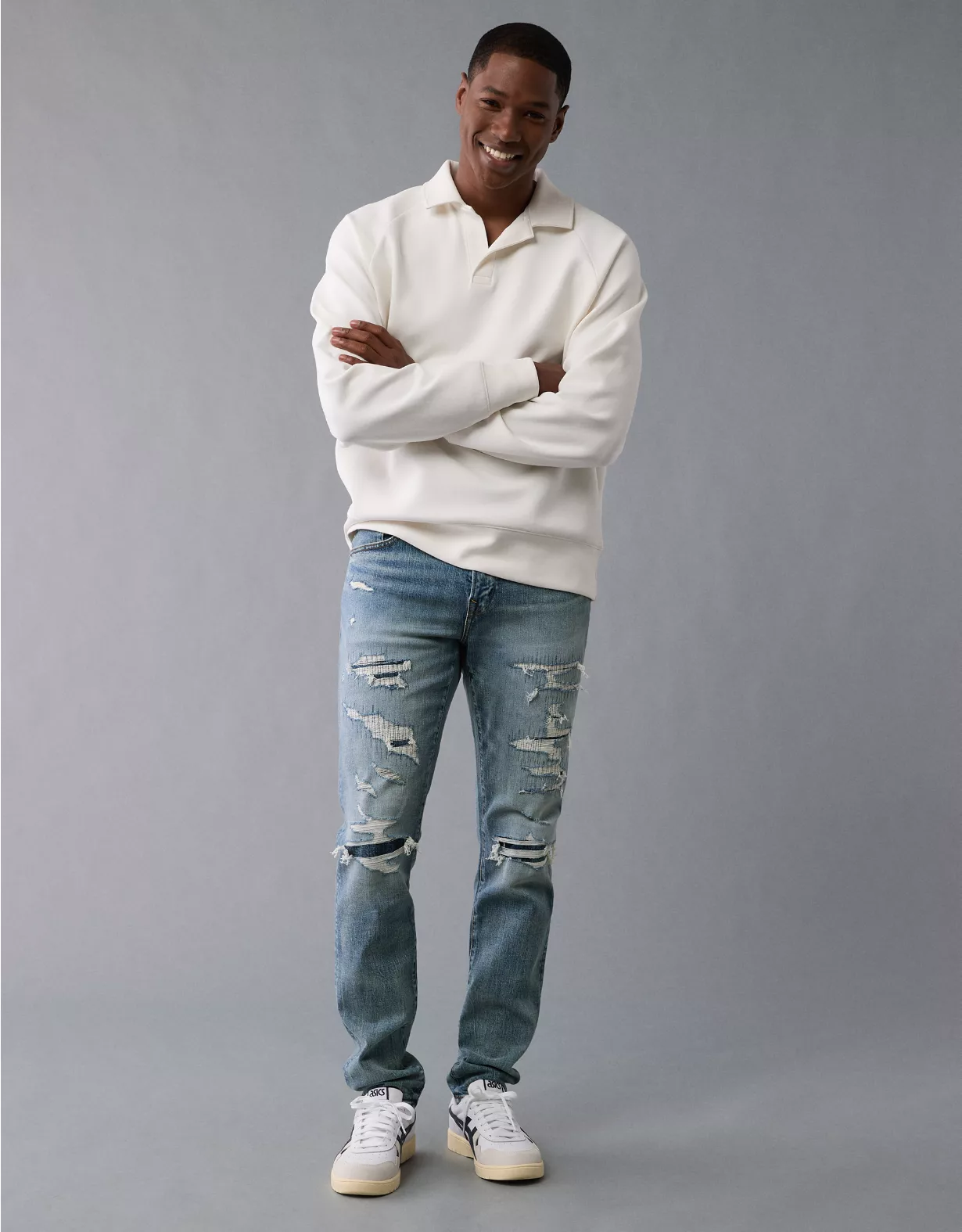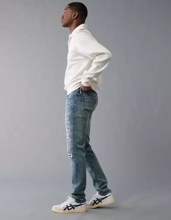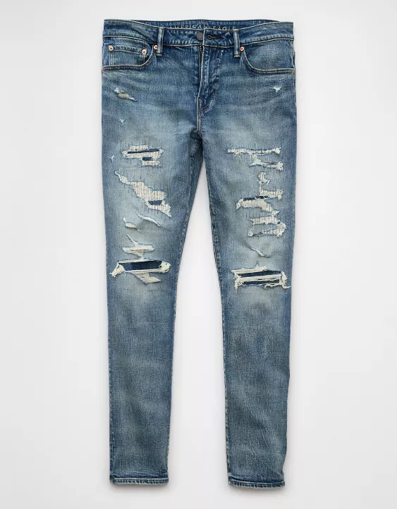 AE AirFlex+ Patched Athletic Skinny Jean Marbled Blue