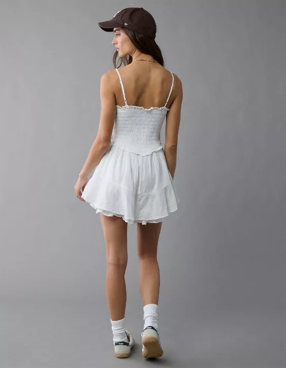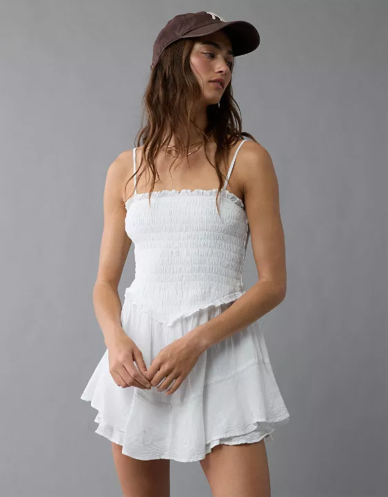 A bold, trendy take on your go-to romper, featuring a v-waist and a smocked bodice that holds you in.