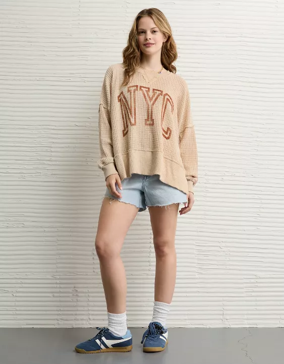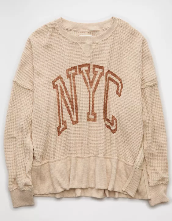 AE Big Hug Crew Neck Waffle Sweatshirt Oatmeal Heather