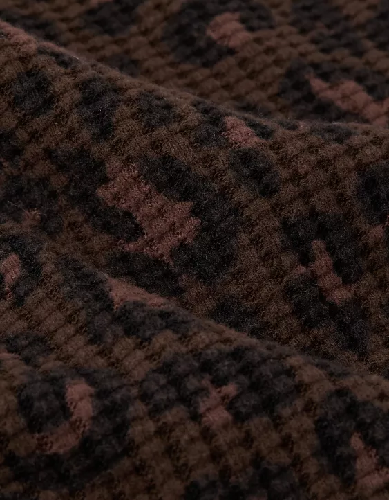 AE Big Hug Off-The-Shoulder Waffle Sweatshirt Dark Brown