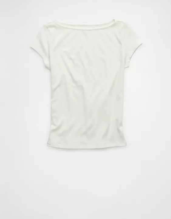 A femme take on the baby tee, featuring a classic boatneck and fitted silhouette.
