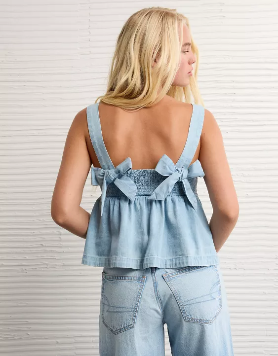 A femme, flowy cami with a delicate bow back, perfect for layering or making a statement on its own.