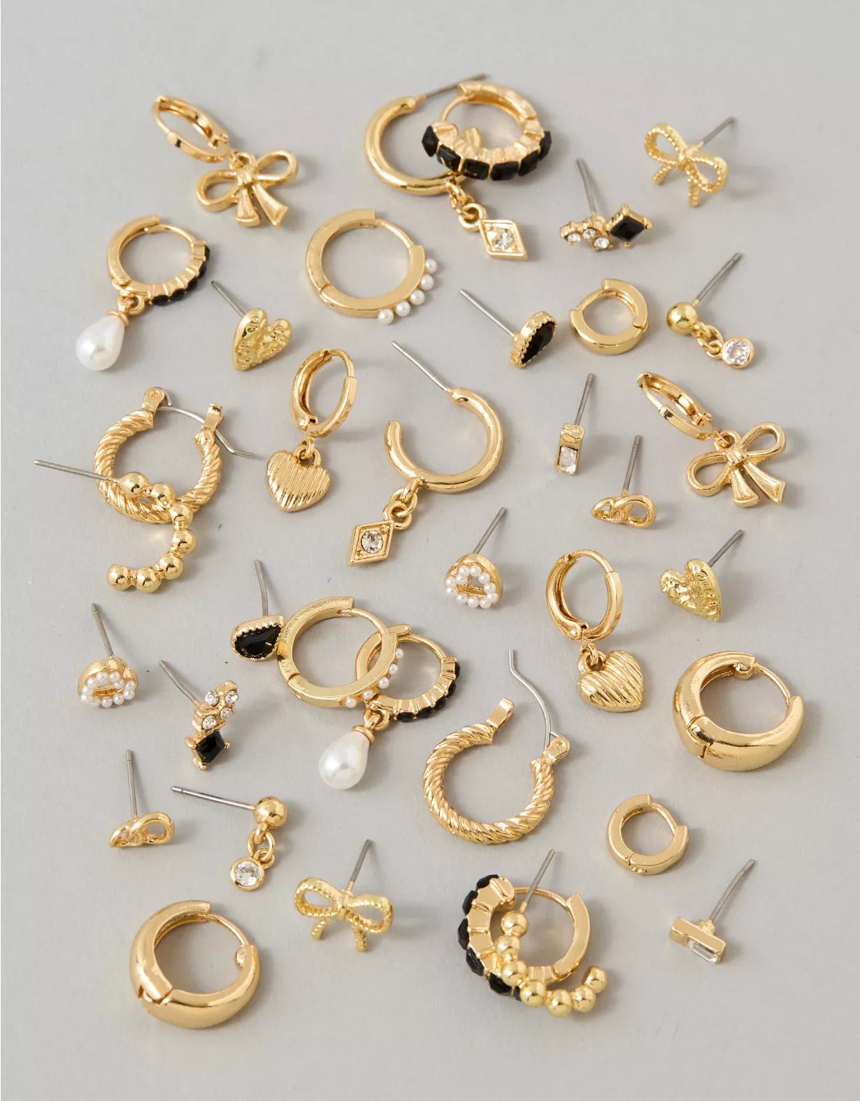 Add some glitz to your glam with a special 18-pack of bow earrings, perfect for layering and stacking.