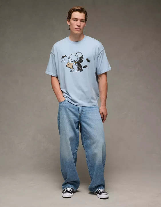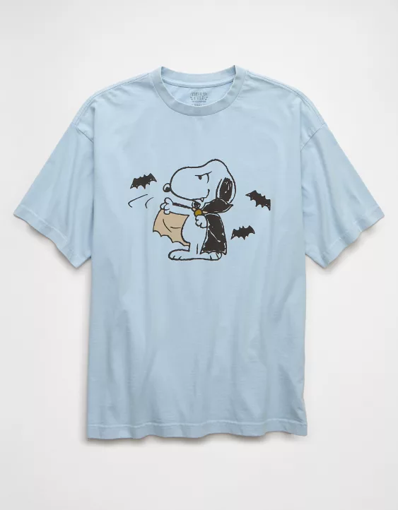AE Boxy Halloween Snoopy Graphic T-Shirt Light Blue