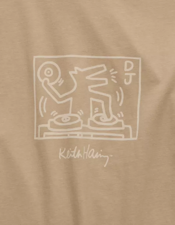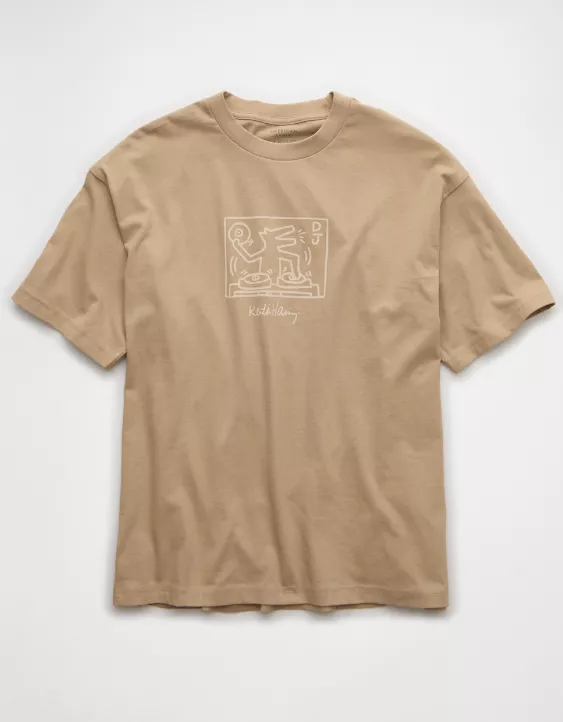 AE Boxy Keith Haring Graphic T-Shirt Khaki