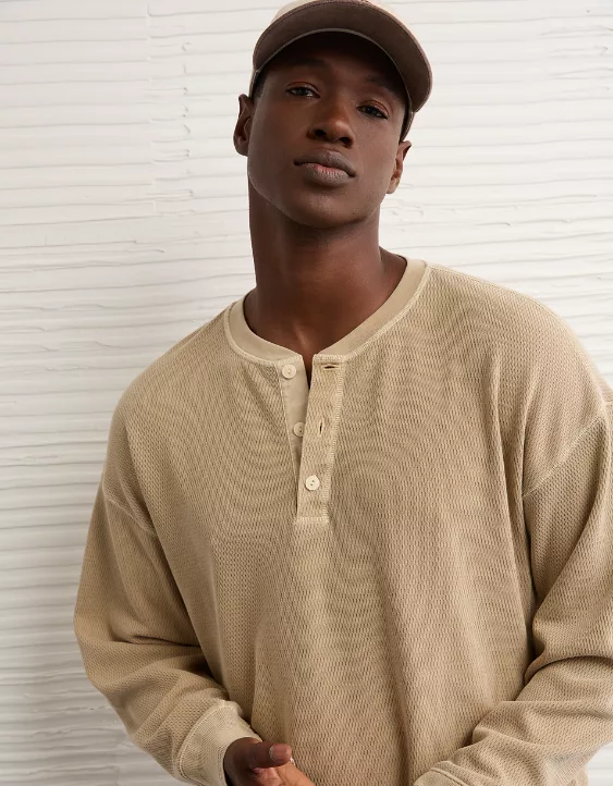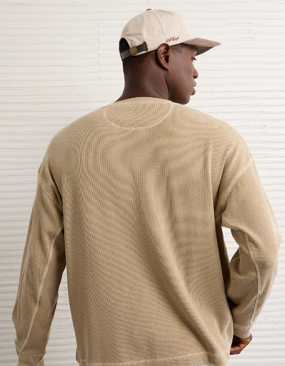 A softly washed thermal tee that’s all about comfort, with a Henley placket and long sleeves for a relaxed, laidback vibe.