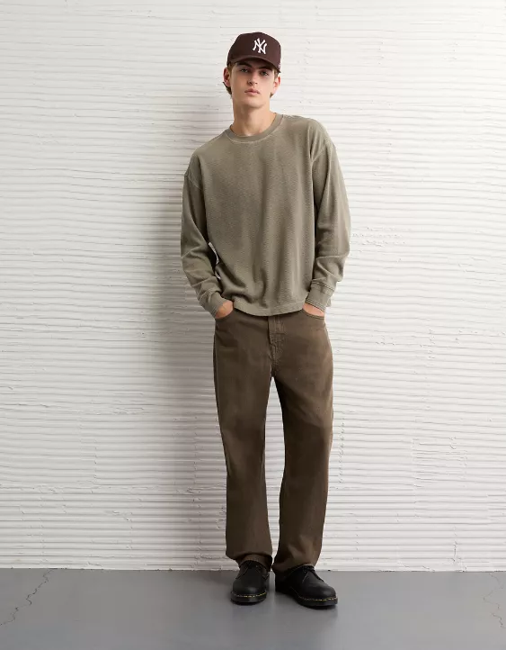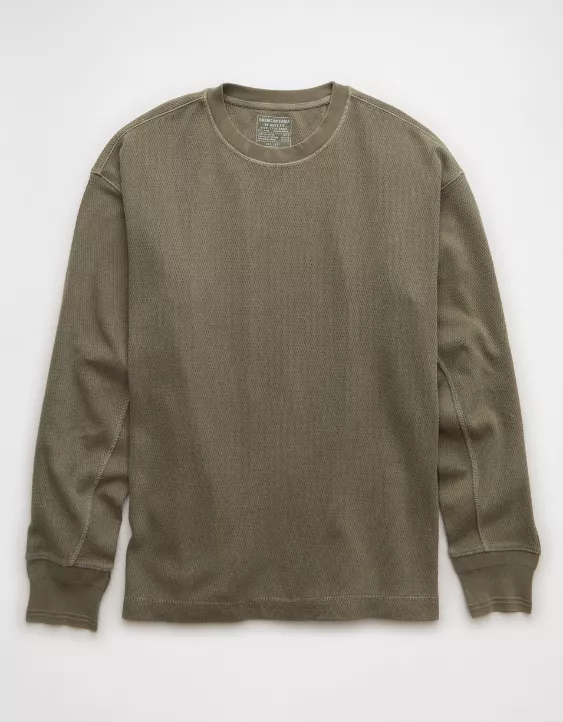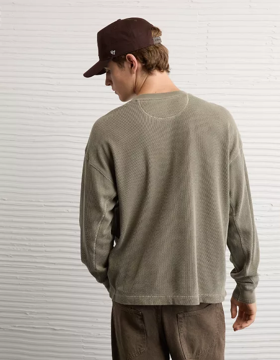 A softly washed thermal tee that’s all about comfort, with a boxy fit and long sleeves for a relaxed, laidback vibe.