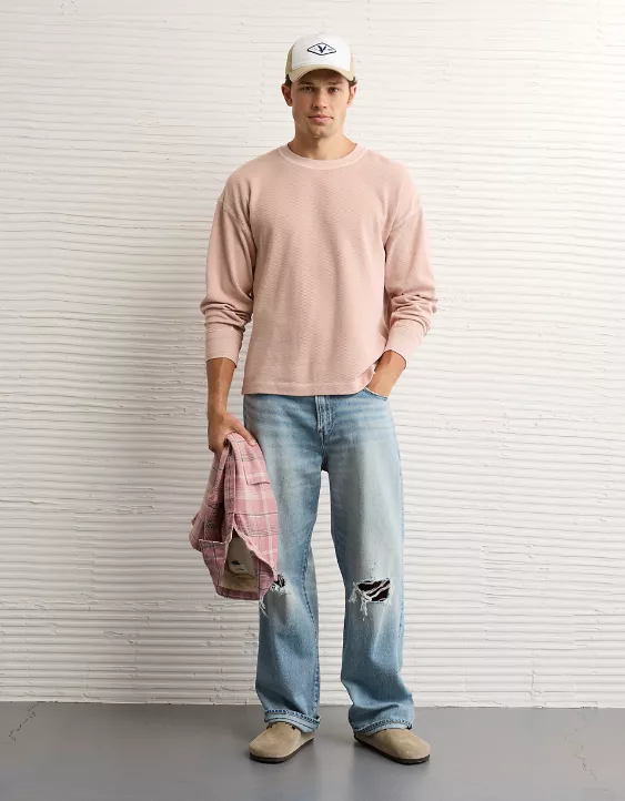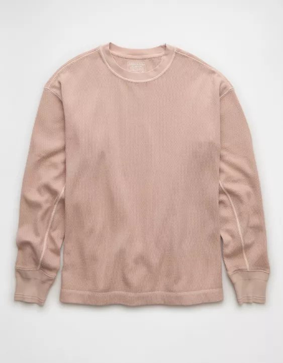 A softly washed thermal tee that’s all about comfort, with a boxy fit and long sleeves for a relaxed, laidback vibe.