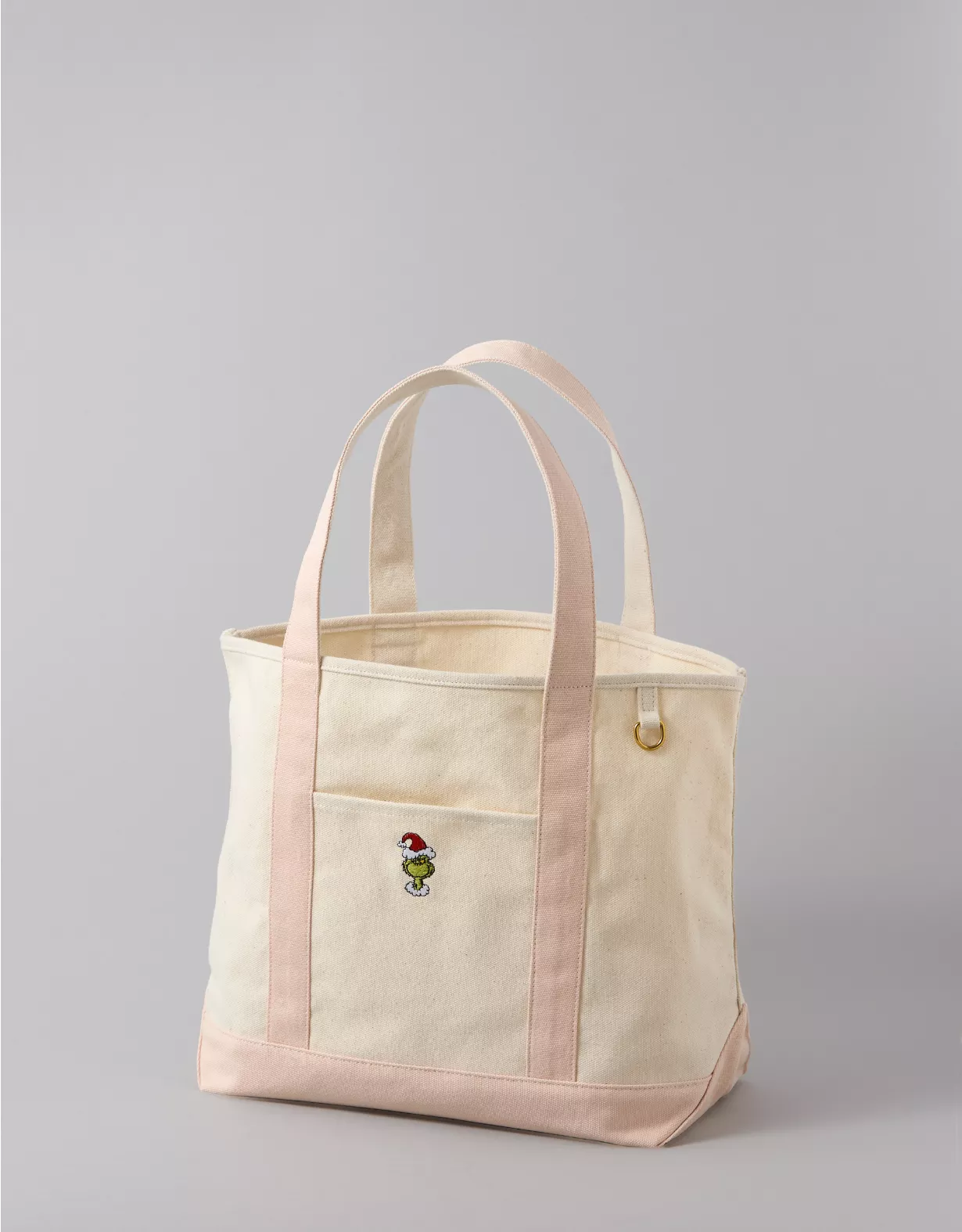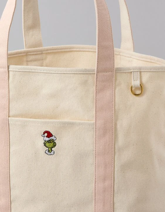 AE Cotton Canvas Holiday Grinch Tote Bag Rose
