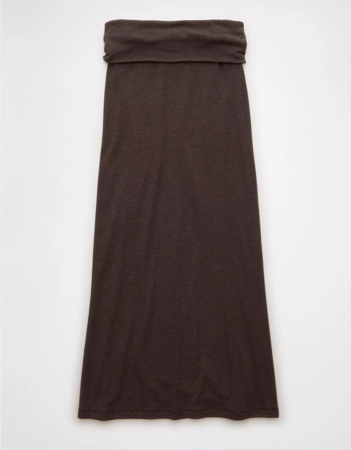 AE Cozy High-Waisted Foldover Maxi Skirt Chocolate