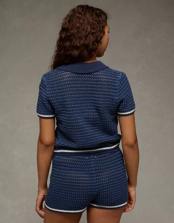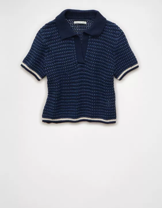 AE Cropped Crochet Sweater Polo Shirt Midnight