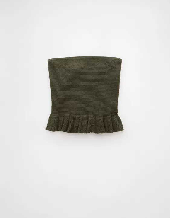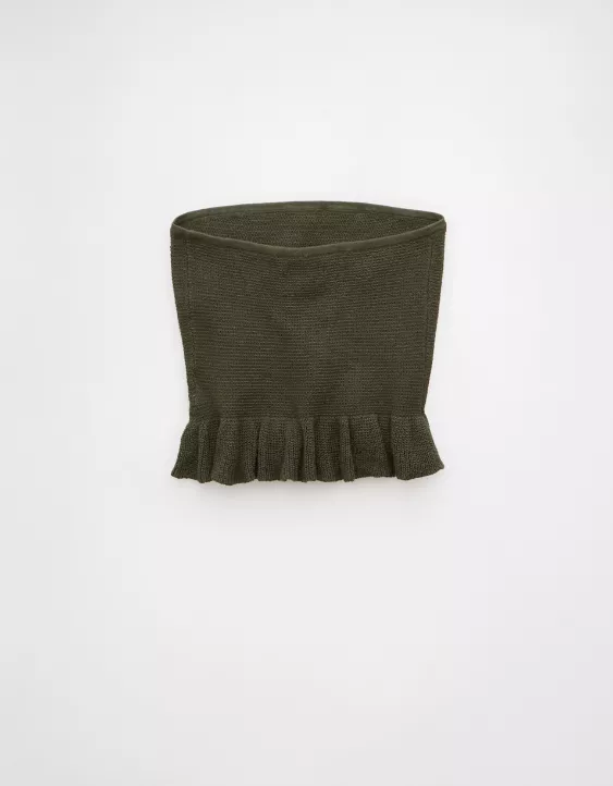 AE Cropped Peplum Sweater Tube Top Olive