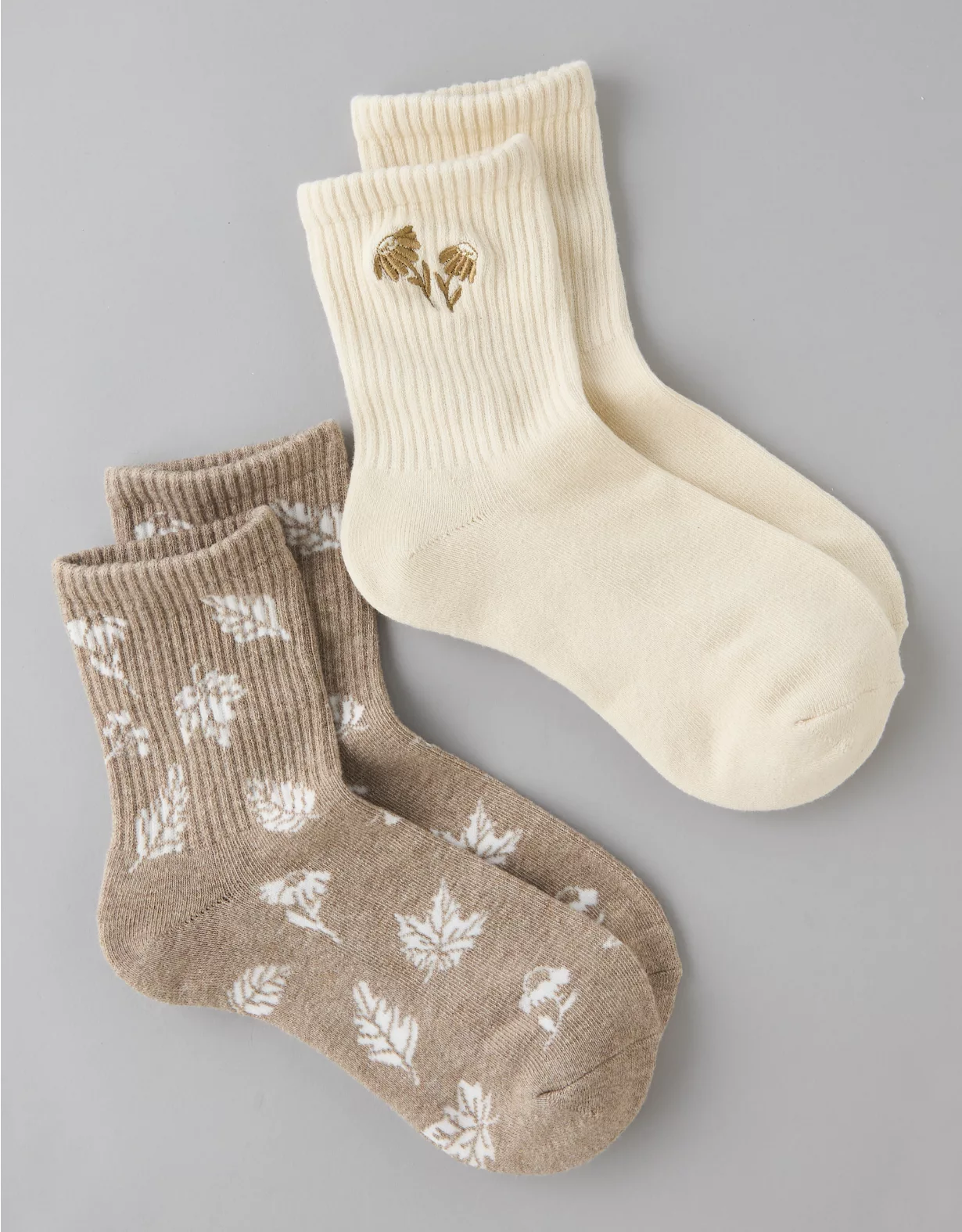 AE Daisies Cropped Crew Socks 2-Pack Latte
