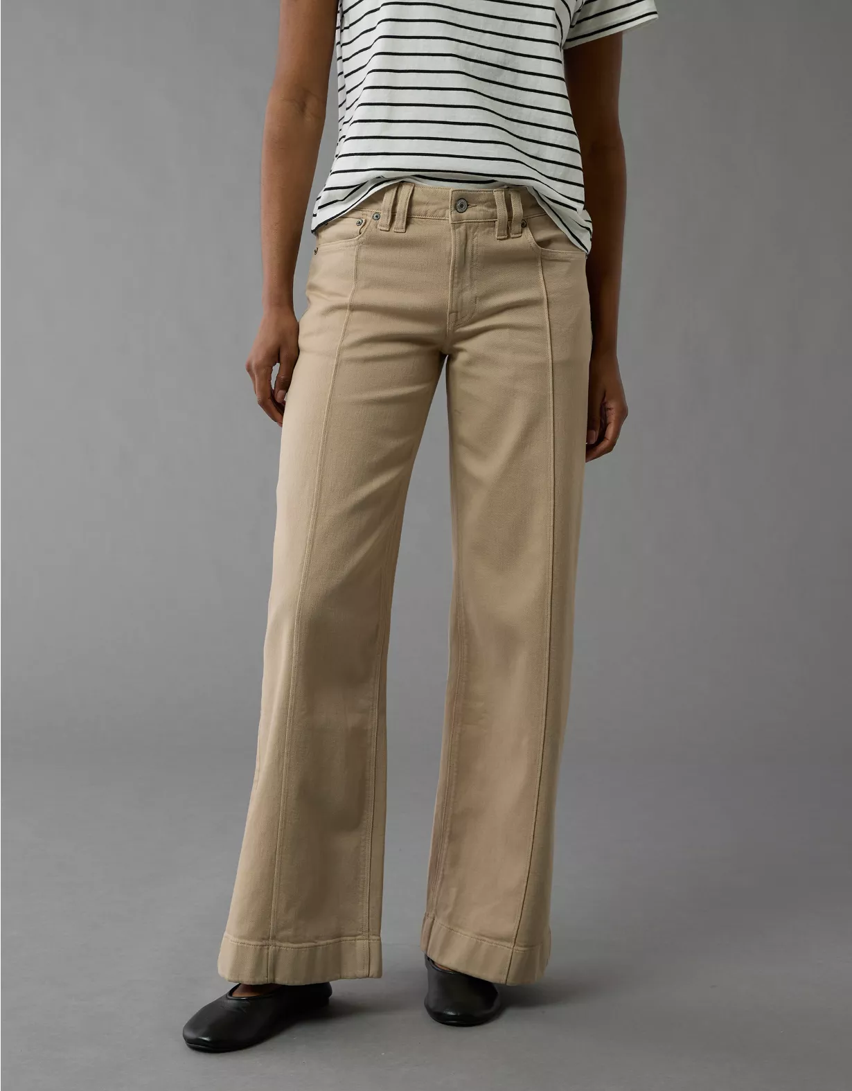 AE Dreamy Drape Stretch Low-Rise Baggy Wide-Leg Pant Soft Oat