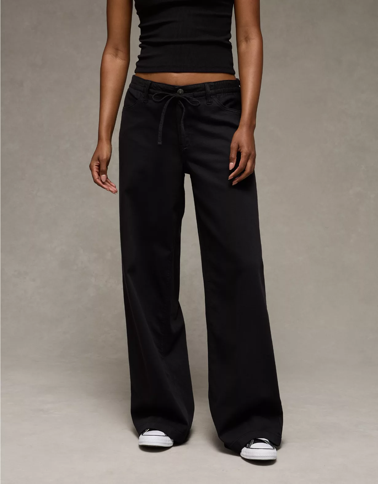 AE Dreamy Drape Stretch Low-Rise Ultra Wide-Leg Pant Onyx Black