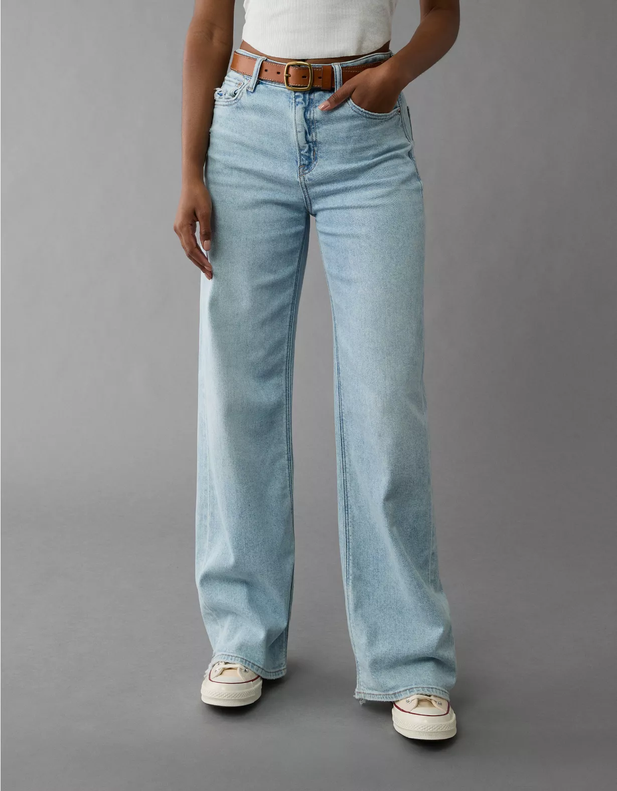 AE Dreamy Drape Stretch Super High-Waisted Baggy Wide-Leg Jean Salty Air