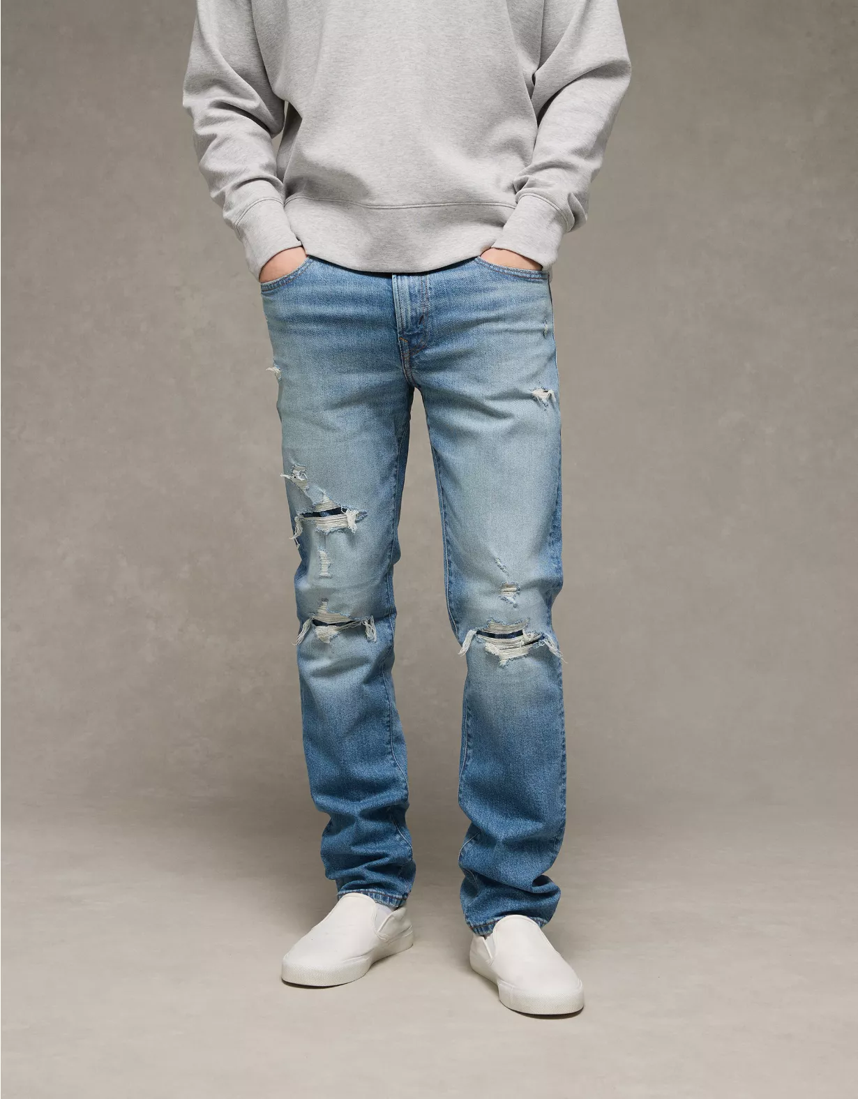 AE EasyFlex +TENCEL™ Fibers Patched Slim Straight Jean Medium Destroy