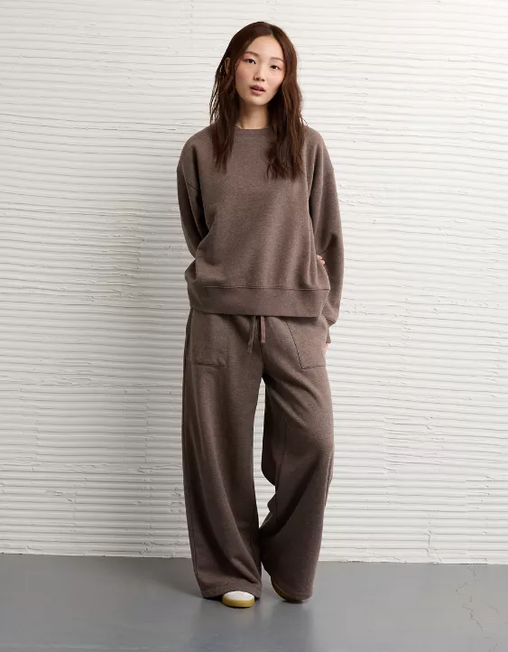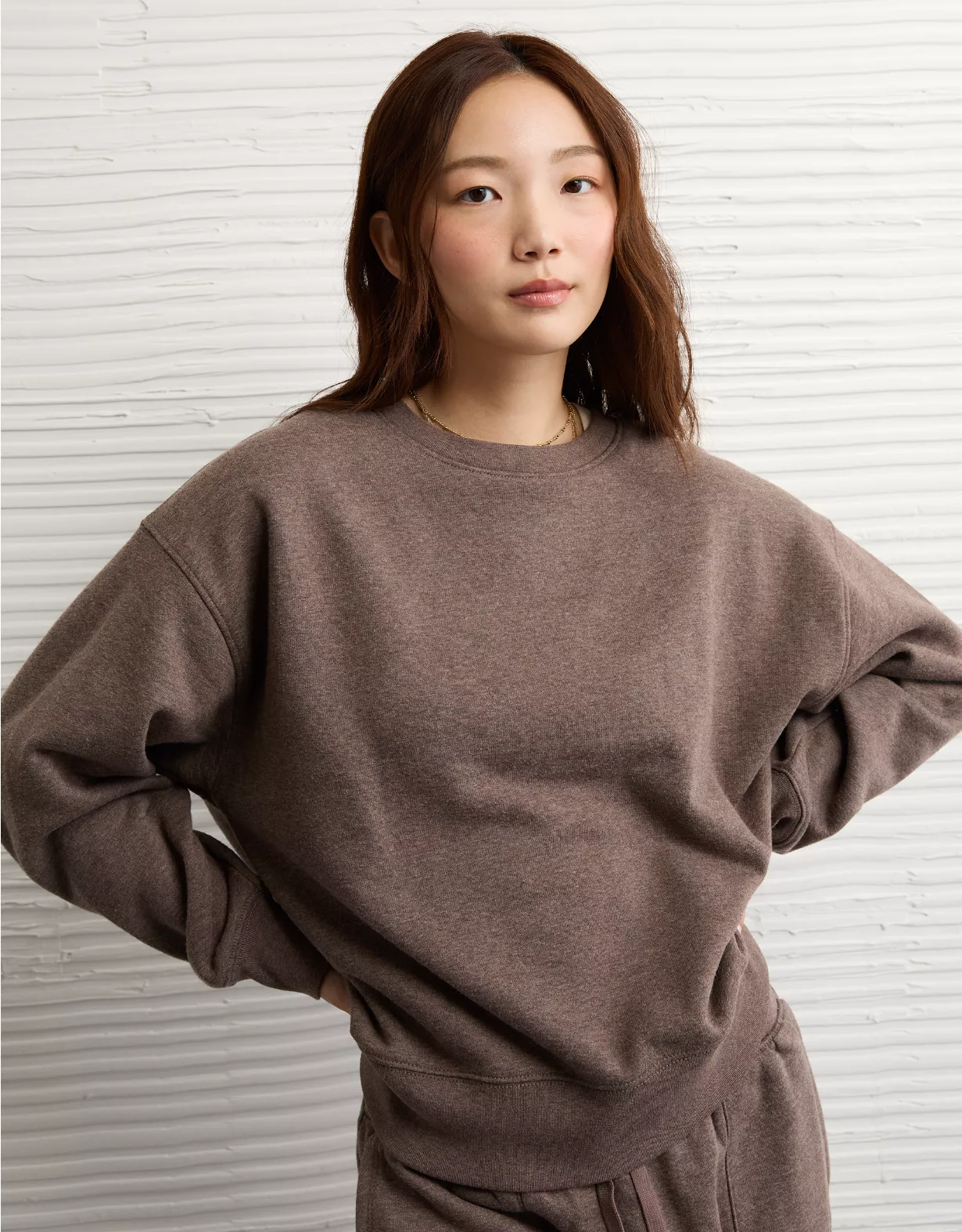 AE Everyday Luxe Crew Neck Sweatshirt Chocolate