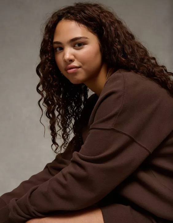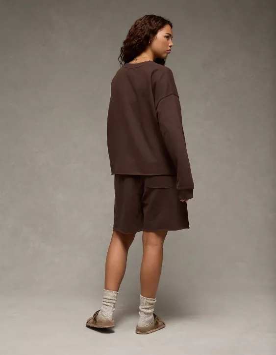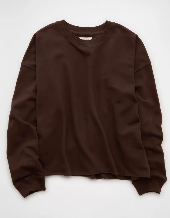 AE Everyday Luxe Cropped Cut-Off Sweatshirt Dark Brown