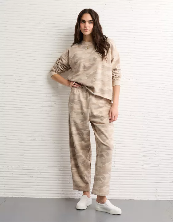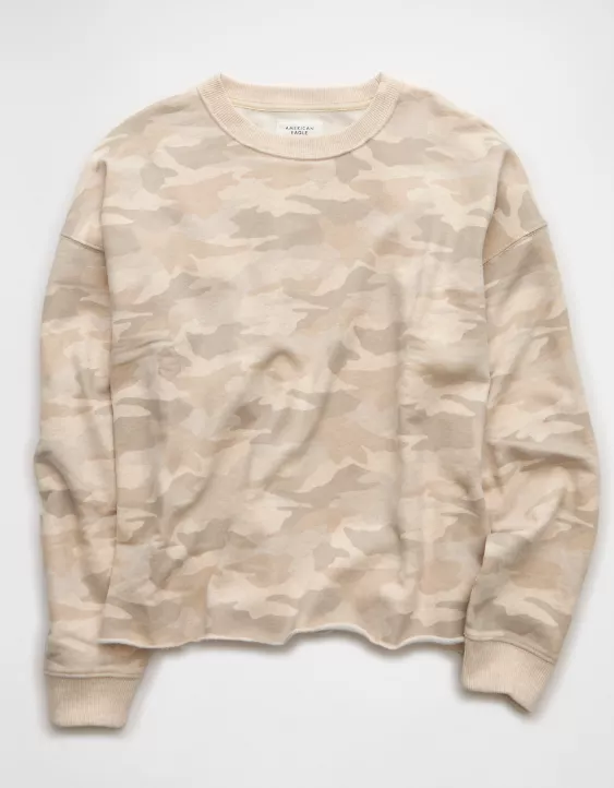 AE Everyday Luxe Cropped Cut-Off Sweatshirt Oatmeal Heather