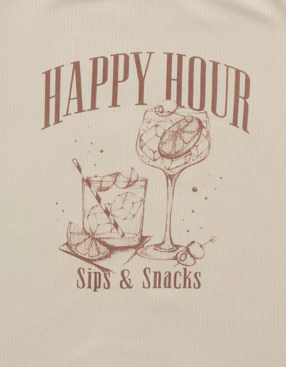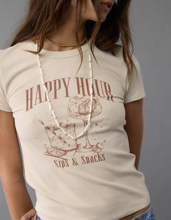 AE Happy Hour Graphic Hey Baby Tee Beige