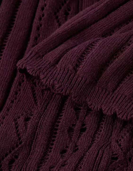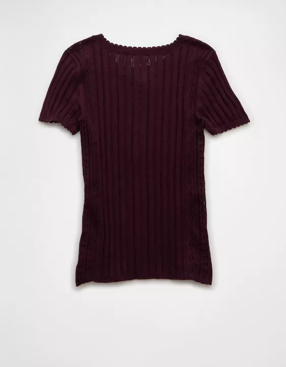 AE Henley Pointelle Sweater T-Shirt Cherry