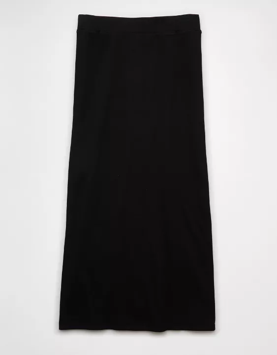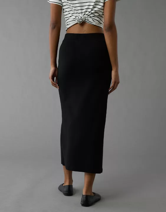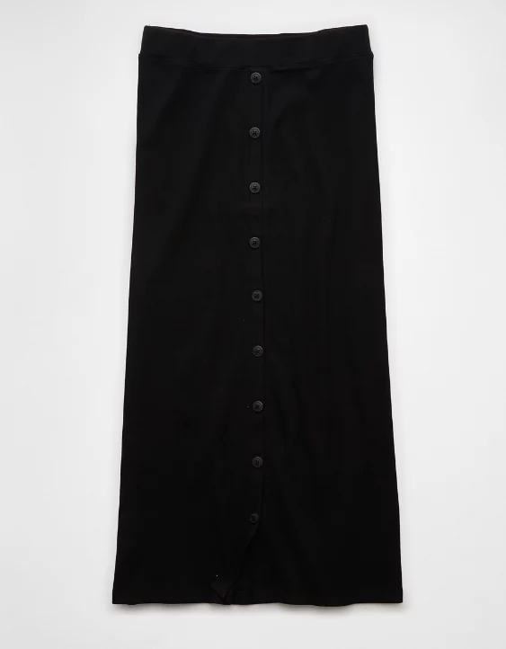 AE High-Waisted Button-Up Knit Midi Skirt Black