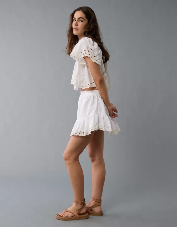 AE High-Waisted Embroidered Eyelet Mini Skirt White