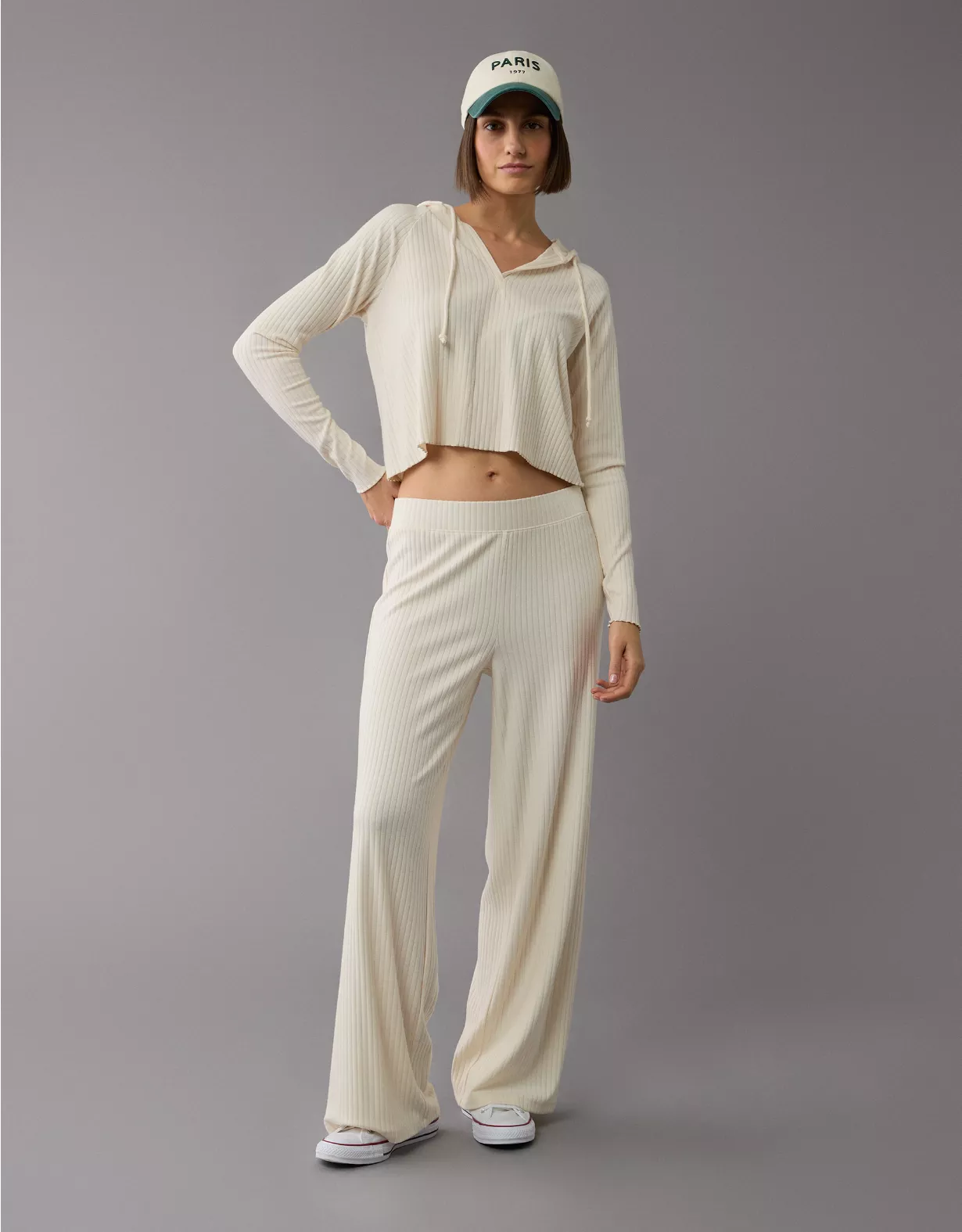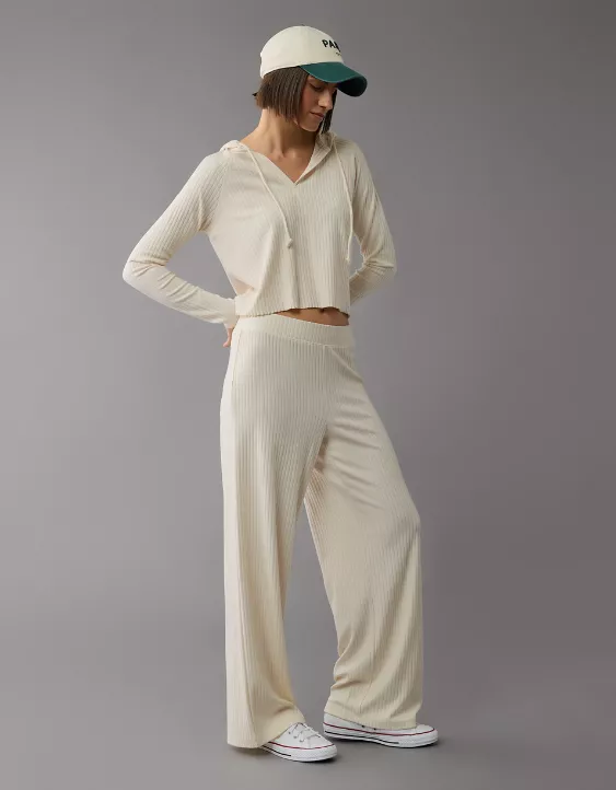AE High-Waisted Knit Lounge Pant Cream