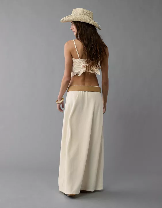 AE High-Waisted Linen-Blend Maxi Skirt Cream