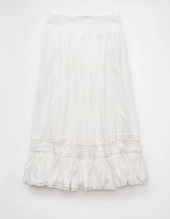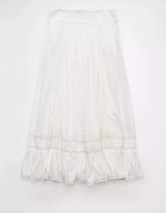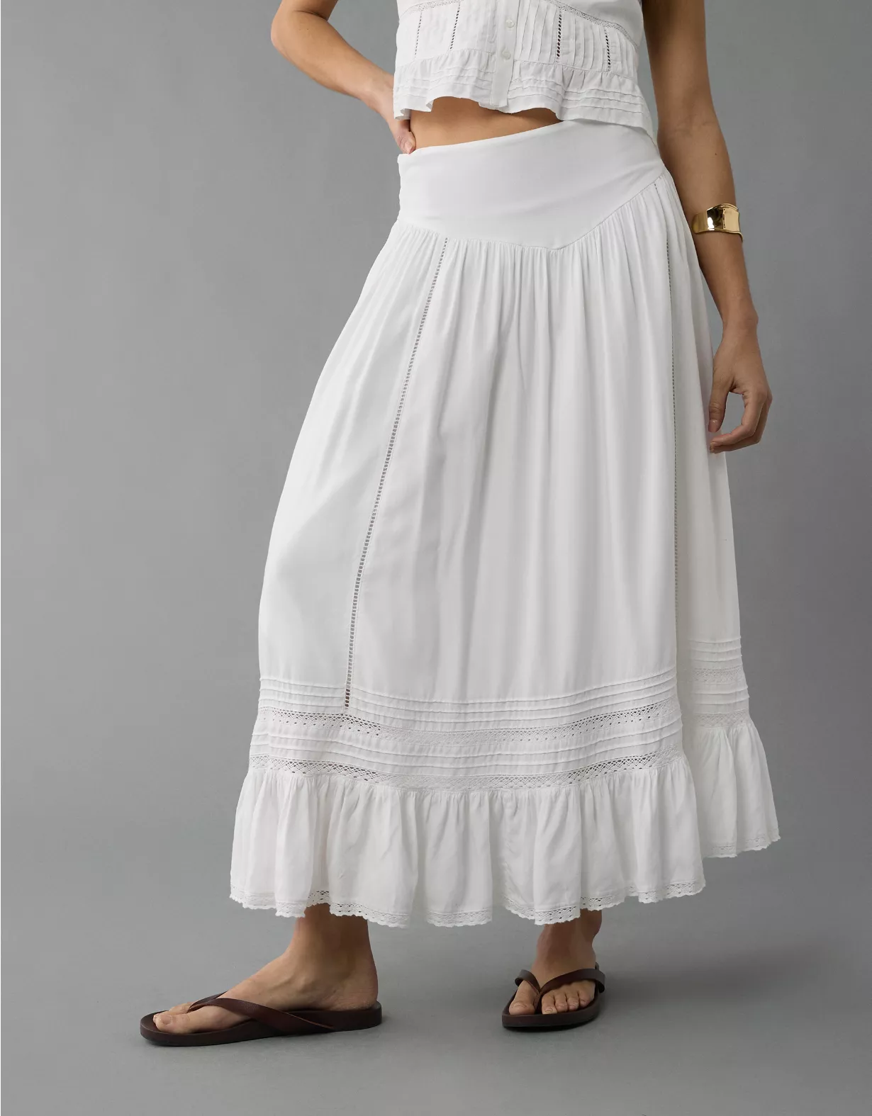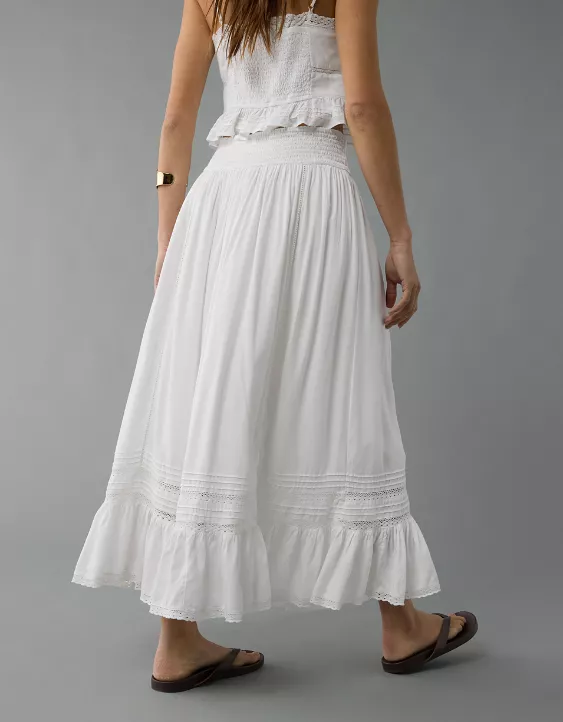 Part of an elegant matching set, this flowy maxi skirt has lace inset details galore for a feminine touch.