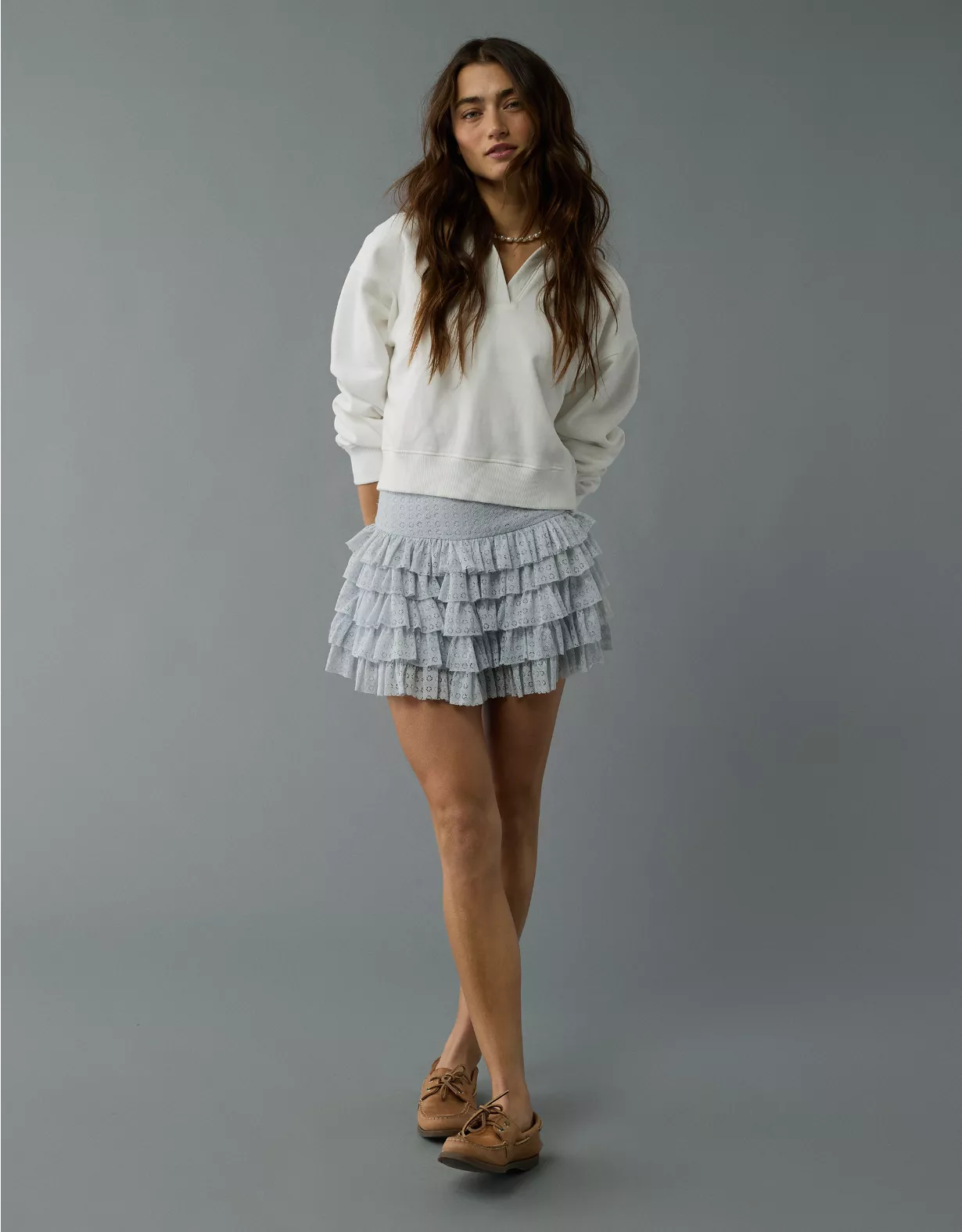 AE High-Waisted Ruffle Mini Skort Light Blue