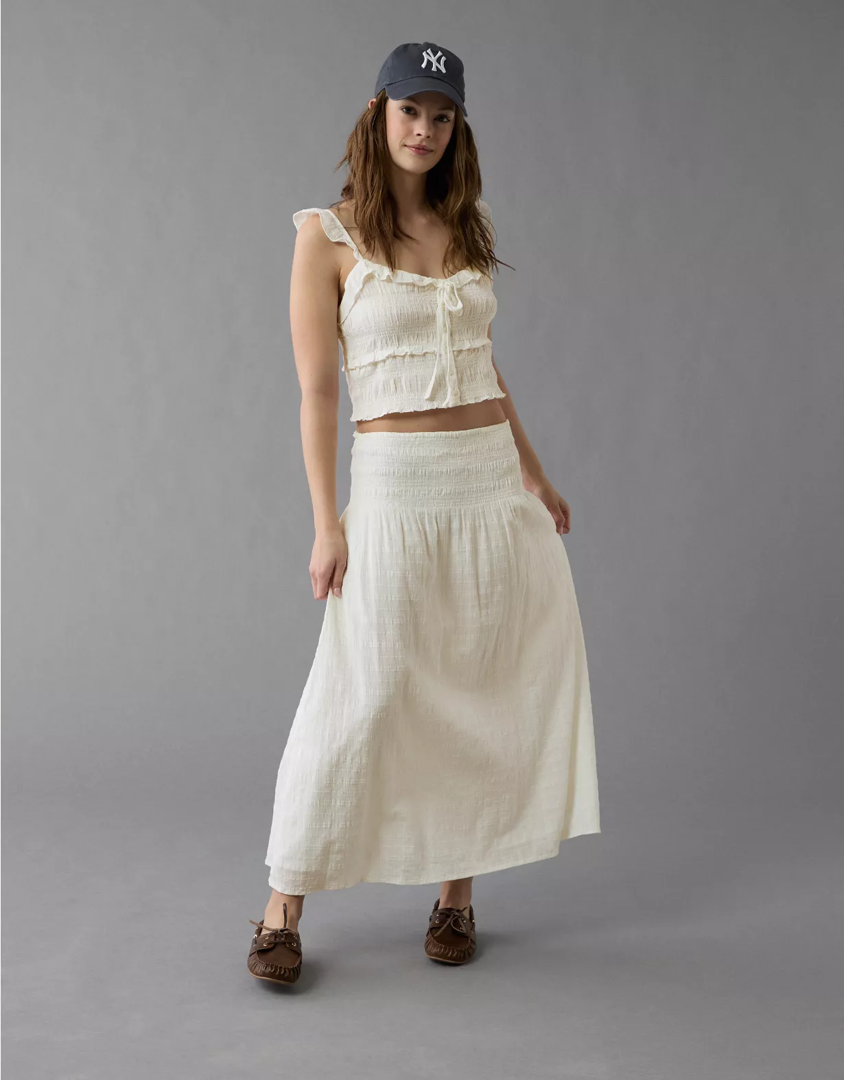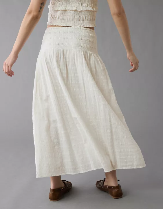 AE High-Waisted Smocked Maxi Skirt Cream