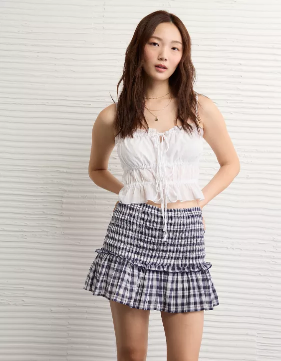 The mini of your dreams, featuring stretchy smocked fabric that holds you in just right.