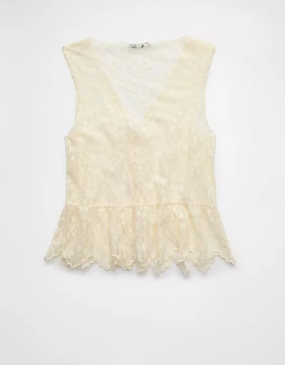 A lacy, feminine top that you can rock solo or layer as a vest.