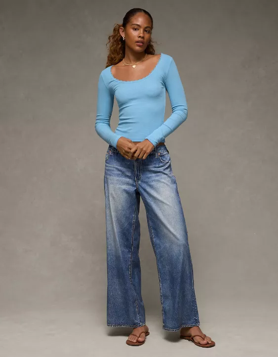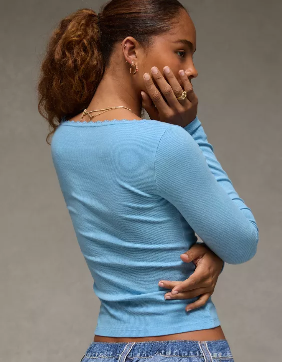 A fitted, long sleeve tee with a touch of lace trim for a playful, feminine twist.