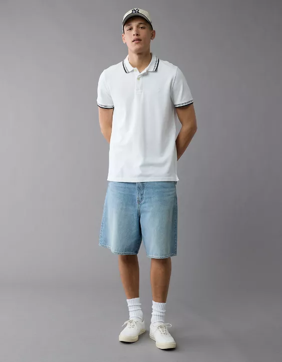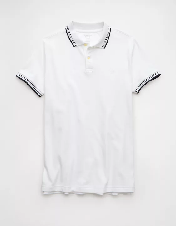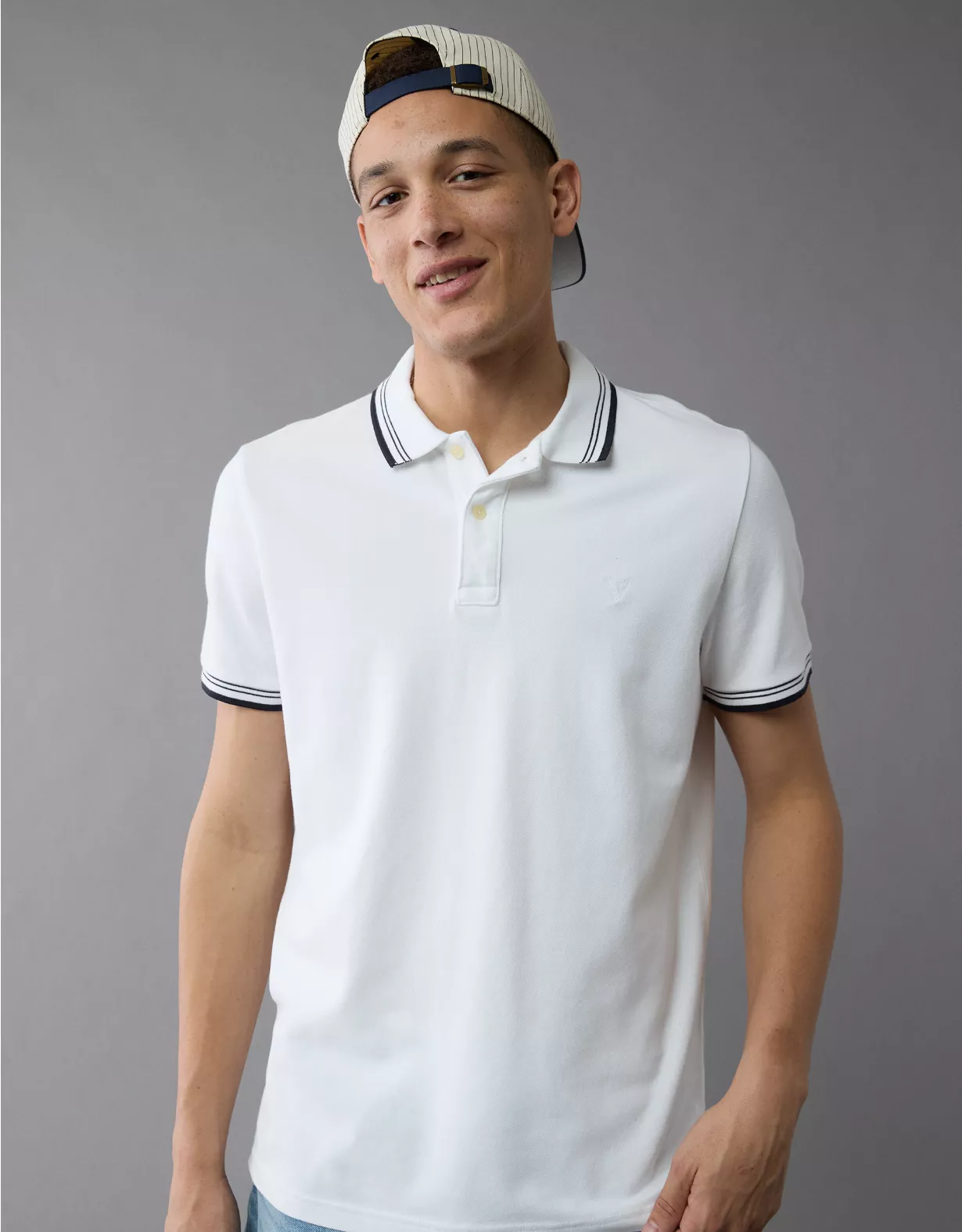 AE Lived-In Stretch Pique Slim Fit Tipped Polo Shirt White
