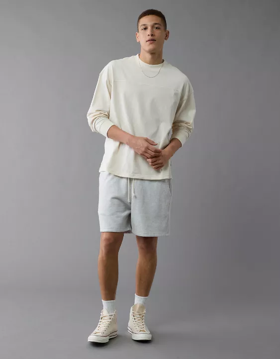AE Long-Sleeve Boxy Sueded Jersey T-Shirt Cream