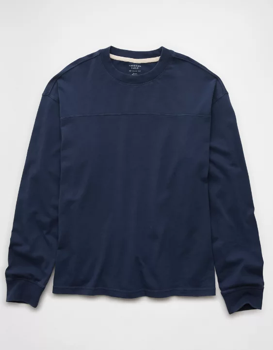 AE Long-Sleeve Boxy Sueded Jersey T-Shirt Midnight Blue