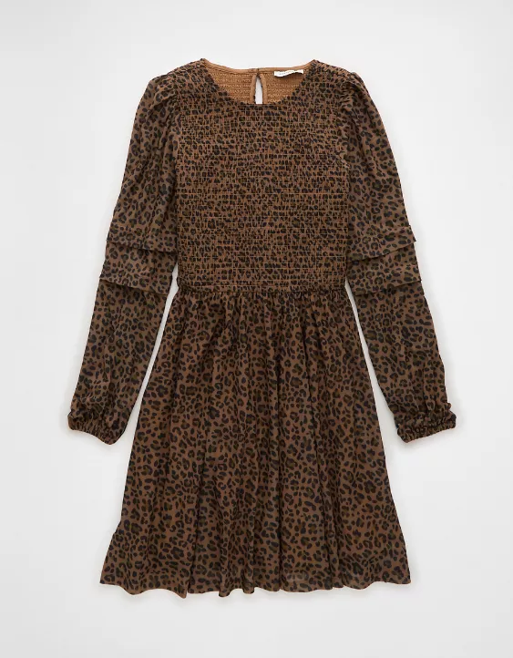 A perfectly demure, classy holiday dress, featuring a smocked bodice that holds you in and mesh fabric.