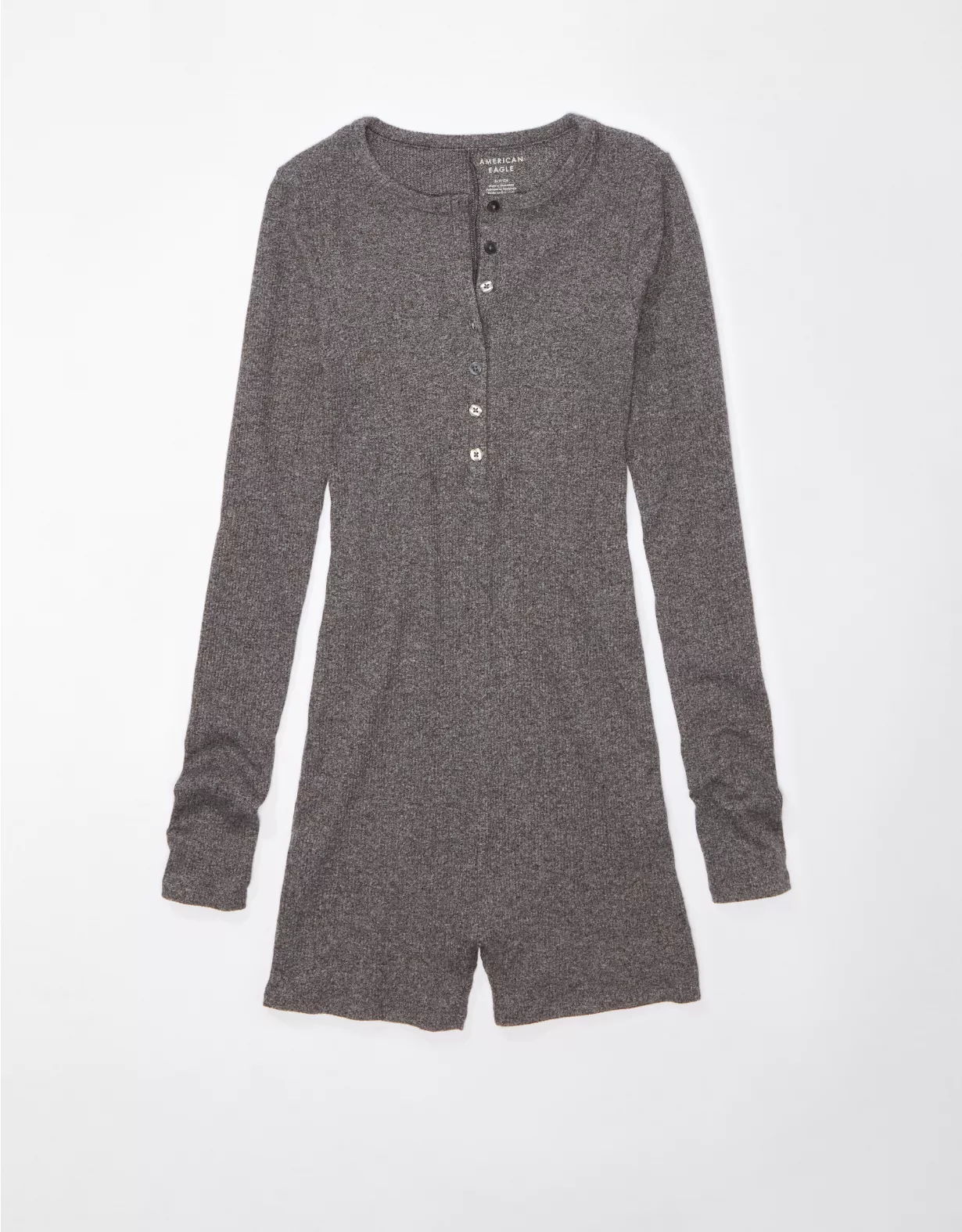 The perfect onesie for lounging around, featuring a luxurious knit fabric & a casual henley neckline.