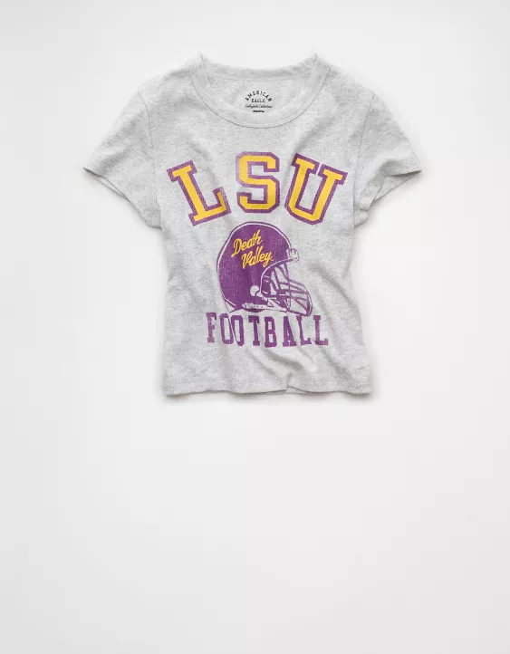 AE LSU Tigers Graphic Cropped Baby Tee Medium Heather Gray