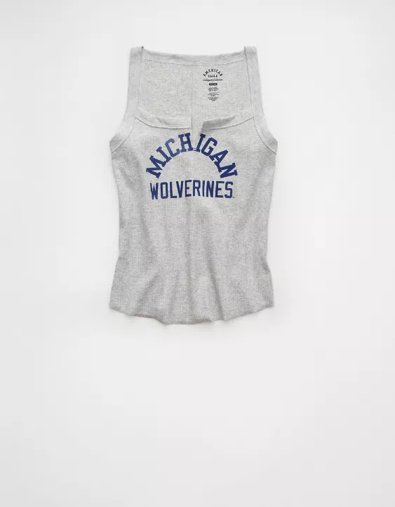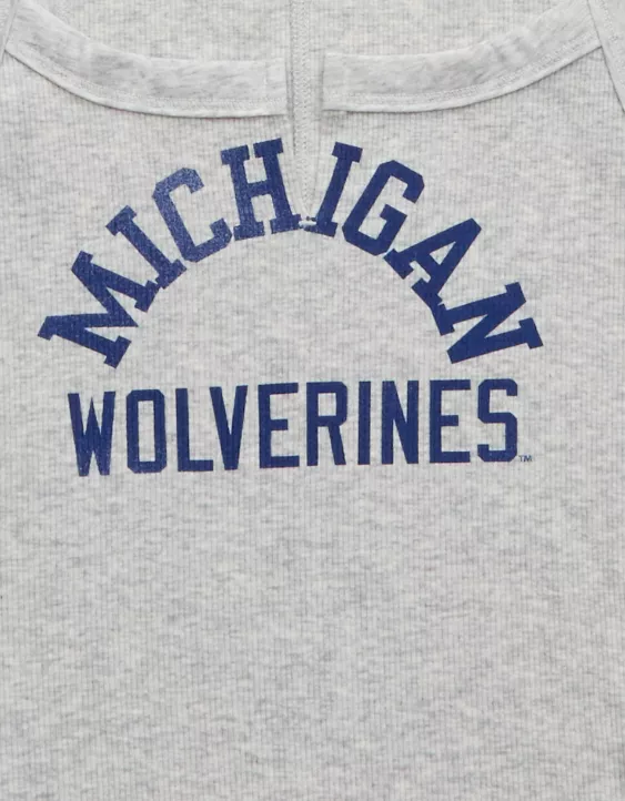 AE Michigan Wolverines Graphic Notch Neck Tank Top Medium Heather Gray
