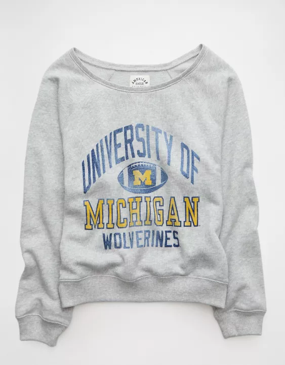 AE Michigan Wolverines Graphic Off The Shoulder Sweatshirt Gray Heather