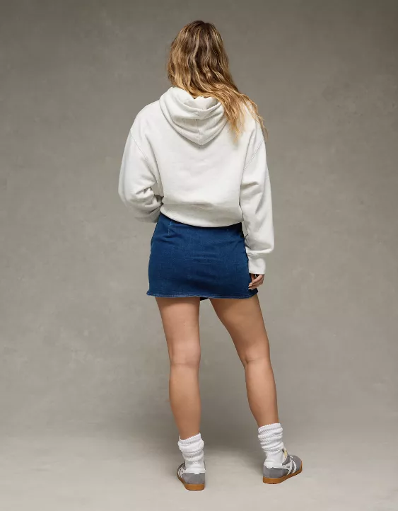The mini skirt silhouette you know and love, now in a high-stretch denim with shorts underneath.