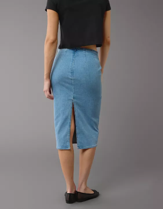 Our highest rise and a mid-length a-line silhouette, made from high-stretch denim with no shortage of comfort.
